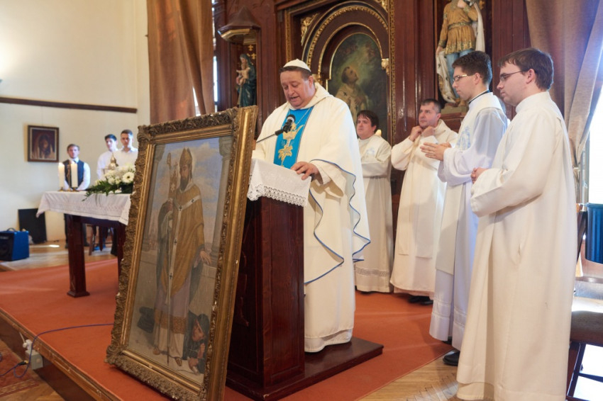 A szentbeszédet Sárai-Szabó Kelemen bencés szerzetes mondta, aki a homília végén egy festményt adott át az ünneplő közösségnek, amely Szent Norbertet ábrázolja egy bencés társaságában. Sárai-Szabó Kelemen a Győr-Moson-Sopron megyei Vének község templomában fedezte fel a képet, amelynek eredete ismeretlen, arról különböző kalandos történetek szólnak.