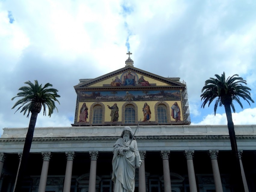 Szent Pál szobra a római Falakon kívüli Szent Pál-bazilikánál