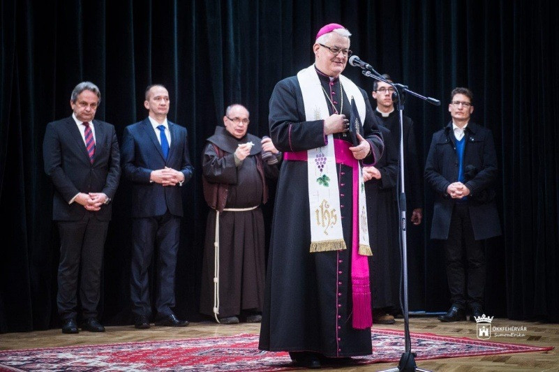 A főpásztor ünnepi beszédében kiemelte, hogy a történelem során, amikor már az emberi erő kevésnek bizonyult, az Istenbe vetett bizalom segítette át a magyar népet minden megpróbáltatáson. Fehérvár lakosságát is az 1739-ben Szent Sebestyén tiszteletére tett, örök időkre szóló fogadalom mentette meg. „Aggodalmaskodunk a jövőnk miatt, mi lesz Európával, amely a kétezer éves hagyomány ellenére alkotmányából száműzte a kereszténységet, a keresztény kultúrát. Látjuk azt is, ahogy vallások nevében pusztítanak el országokat, üldöznek és ölnek meg embereket. Nekünk, magyaroknak küldetésünk van a kereszténység védelmére, ahogy azt Szent Pio atya is megálmodta. Ezért bíznunk kell abban, hogy a mi országunkból elindul újra az Istenbe vetett hit, Szent István népe hoz majd megmenekülést Európának.”