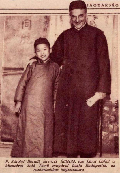 Vele járta Bernát atya az országot (Budapest, Szeged, Esztergom, Csongrád, Győr, Eger, Kecskemét, Székesfehérvár, Zalaegerszeg, stb.), és adományokat gyűjtött a kínai misszió, valamint az ottani árva gyermekek számára. Lévén, hogy Károlyi Bernát a pécsi Collegium Seraphicumban volt novícius, így Pécs városába is elhozta kis pártfogoltját: 1938. április 3-án érkeztek meg a városba.