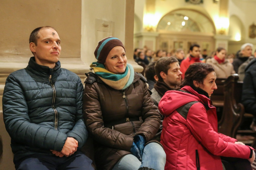 A mise viszont csendes – és csakugyan: hirtelen szinte belezuhanunk a nagy csendbe, éles a kontraszt. Lendvai Zalán plébános azzal kezdi, hogy többen is megkérdezték tőle, hogyan illik össze a hamvazószerda Szent Valentin napjával és a szerelmesek miséjével. Nagyböjt első napja van, vagyis húsvét, Isten szerelmes szeretetének ünnepe felé indulunk el ma, amely nélkül az emberi szerelem sem érthető. Ezen a misén Isten megváltó szeretetébe helyezhetjük és ezáltal jobban megérthetjük a szerelmünket, az egész életünket. Ennek lelkületével hamvazkodunk most.