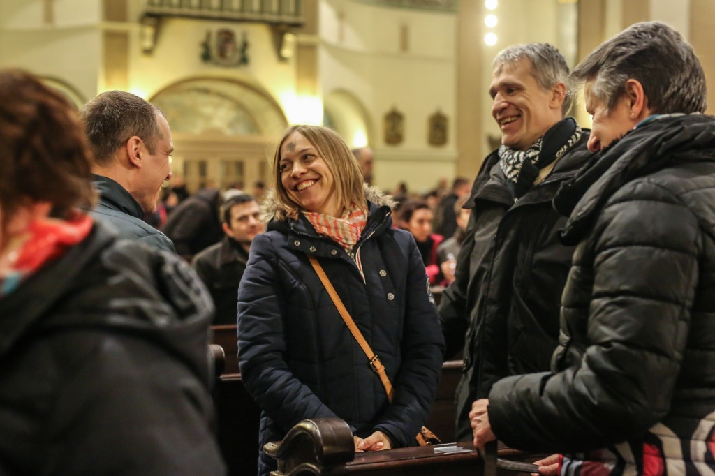Az egyik könyörgés azokat hozza szóba, „akik szeretetet keresnek, és sötétben tapogatóznak” – így hirtelen észreveszem, hogy nemcsak párok, hanem magányos idős emberek is jelen vannak a szentmisén. Ki tudja, mi hozta el őket: talán nem is tudták, hogy ez a ma esti a szerelmesek miséje. Tévedés mégsem történt. Egy igazi közösség fontos jellemzője, hogy nehéz sorsú, fájdalmakat hordozó tagjait soha nem gondolja kevésbé értékesnek.