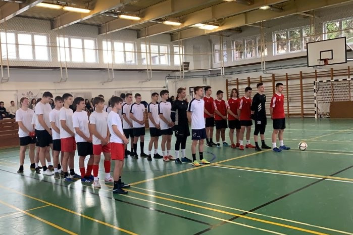 A csapatokat Biró Péter igazgató köszöntötte, majd Méry László iskolalelkész megáldotta a jelenlévőket és elvégezte a kezdőrúgást.