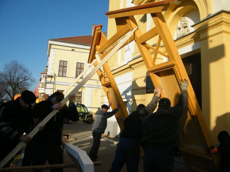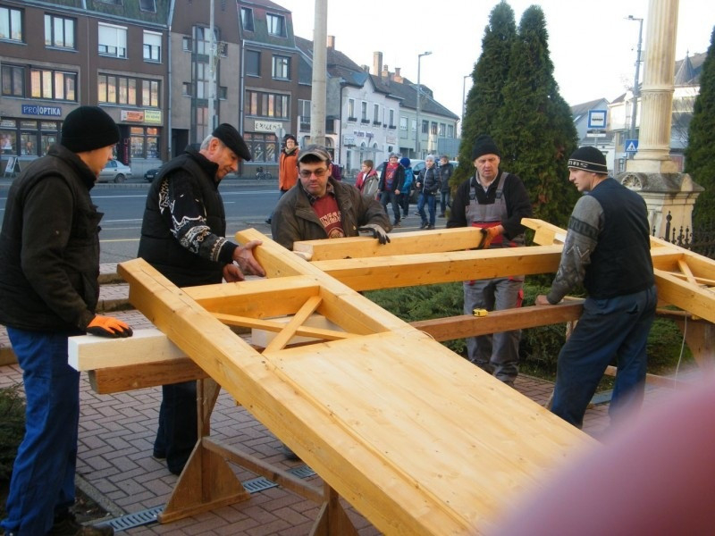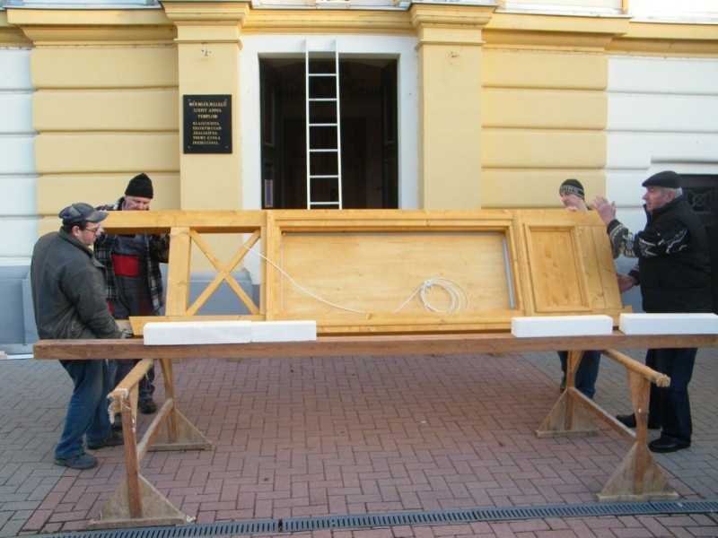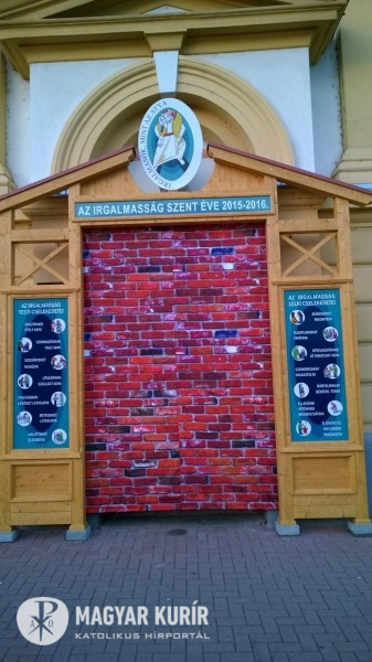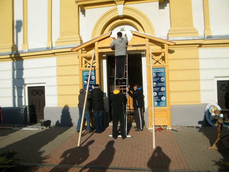 A nagytemplom főbejáratánál elhelyezett szentévi kaput december 5-én, szombaton állították fel. A kivitelezési munkákat három szakember végezte. Az irgalmasság testi és lelki szimbólumait feliratozva, gyönyörű színharmóniában álmodta meg Füzi József vállalkozó; a fából készült díszkapu igazi asztalos remekmű, Szabó István asztalosmester munkája; Füzi Sándor nevéhez az anyagbeszerzés, a technikai kivitelezés kötődik.