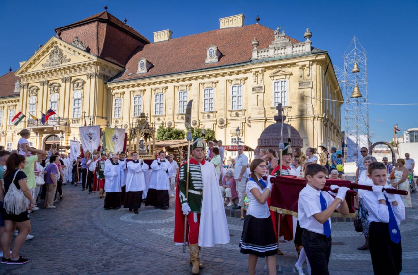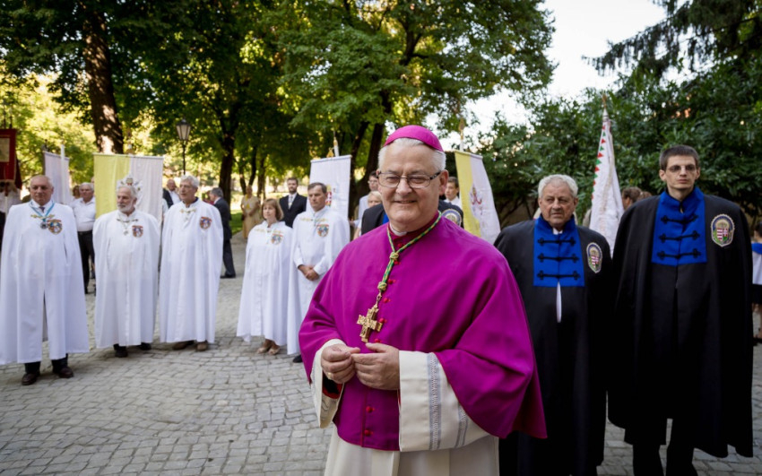 Az ünnepi szentmisén mondott beszédében a megyéspüspök az egyházi hagyományok ápolását, megőrzését és a keresztény értékek állhatatos közvetítését állította a középpontba, amelyben Szent István király mutatott utat a magyarságnak. Ma a szent dolgok tisztelete kiveszőben van – hangsúlyozta a főpásztor –, és olyan dolgokat állítanak elénk erényként, amelyek megmaradásunkat, az emberiség jövőjét veszélyeztetik. „Értékek vannak ránk bízva, és ezeket az értékeket nem elég csak őrizni, tovább kell adni, tovább kell éltetni. Mert ezek a szent dolgok adnak erőt a megmaradáshoz, segítenek és eligazítanak. Ezek az értékek mint kincsek éltették és erősítették eleinket, őrizték a megmaradásban, és adtak erőt, ha kellett az újrakezdéshez, az új élethez, vagy olykor a hősi halálhoz, az élet odaadásához, melyből új életnek kell fakadnia” – mondta a püspök, majd hozzátette: „Ma már nem a család, a haza a fontos, hanem a jobb megélhetés. Nincs már gyökér, mely a szülőföldhöz köt, a családhoz, amelyhez tartozunk. A szülők sírját már nem kell látogatni, és találunk új barátokat magunknak mindenhol a világon, hisz ott is hozzánk hasonló, értékeit vesztett, valójában földönfutó emberekkel találkozunk. Már nem szent a vallás, az egyház. Minden szervezet, mely jó okkal, akár haszonszerzésből magát egyháznak nevezi, egyforma jogokat követelhet magának. Nem kell a katolikus egyház kétezer éves tapasztalata az emberről, amely kipróbált igazság, mely kultúrát teremtett, szenteket adott, amely az emberiség életét csodákkal, a szeretet csodáival ajándékozta meg” – fogalmazott a megyéspüspök.