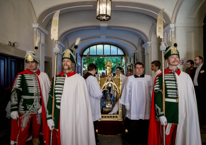 A szentmise végén a székesfehérvári püspök Szent István hermája előtt térdelve mondta el az országfelajánló imát, majd az áldások után ünnepélyes körmenetben vitték vissza az ereklyéket a püspöki palotába. „Isten, hazánkért térdelünk előtted” – hangzott Fehérvár fő terén az imádságos ének.