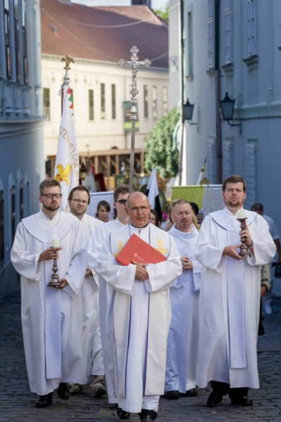A jövő hívő nemzedékét képviselve a fehérvári Szent Imré-s diákok és a papságra készülő fiatalok vitték az első magyar szent család ereklyéit a püspöki palotából a székesegyházba, a főpásztor, a papok, a meghívott vendégek – országos, megyei és városi közéleti vezetők –, a lovagrendek, katolikus iskolások, cserkészek, valamint az egyházközségek képviselőinek kíséretében. Az ünnepen részt vett Franz Kaspar címzetes fehérvári kanonok. A körmenetet a hagyományőrző koronaőrök menete és Székesfehérvári Helyőrségi Zenekar Szent Istvánról és Máriáról szóló énekekkel tette ünnepélyesebbé.