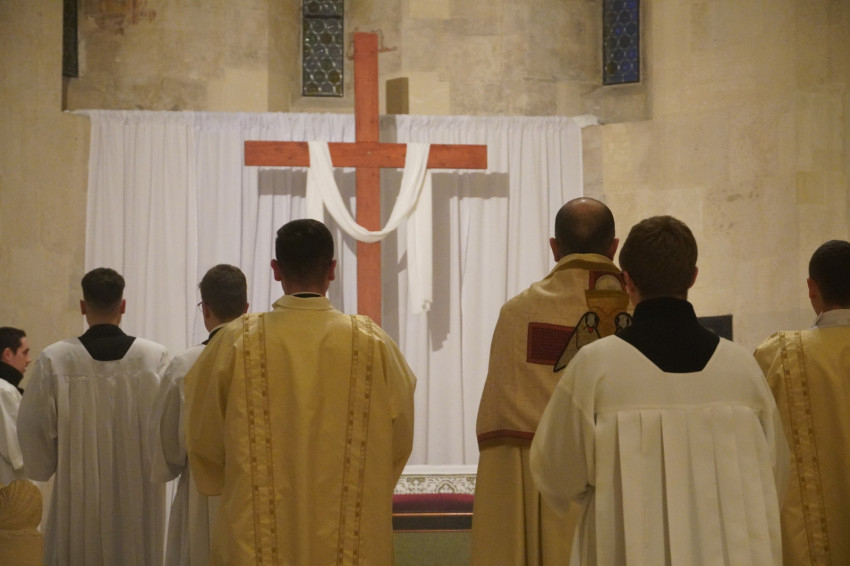 A szeminárium kápolnájában este 10 órakor felolvasták Jézus búcsúbeszédét, majd közös virrasztás következett a fájdalmas rózsafüzér elimádkozásával.