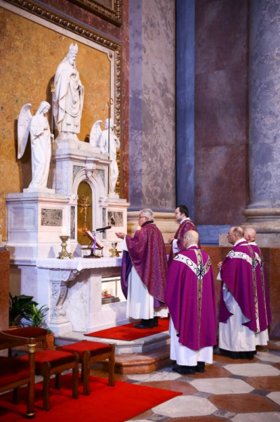 A szentmisét az esztergomi bazilika Szent Adalbert-oltáránál celebrálták, ez az oltár őrzi Boldog Meszlényi Zoltán ereklyéjét. A püspök a Magyar Kolping Szövetség mennyei pártfogója is, így a lelkiségi mozgalom is képviseltette magát a szertartáson.