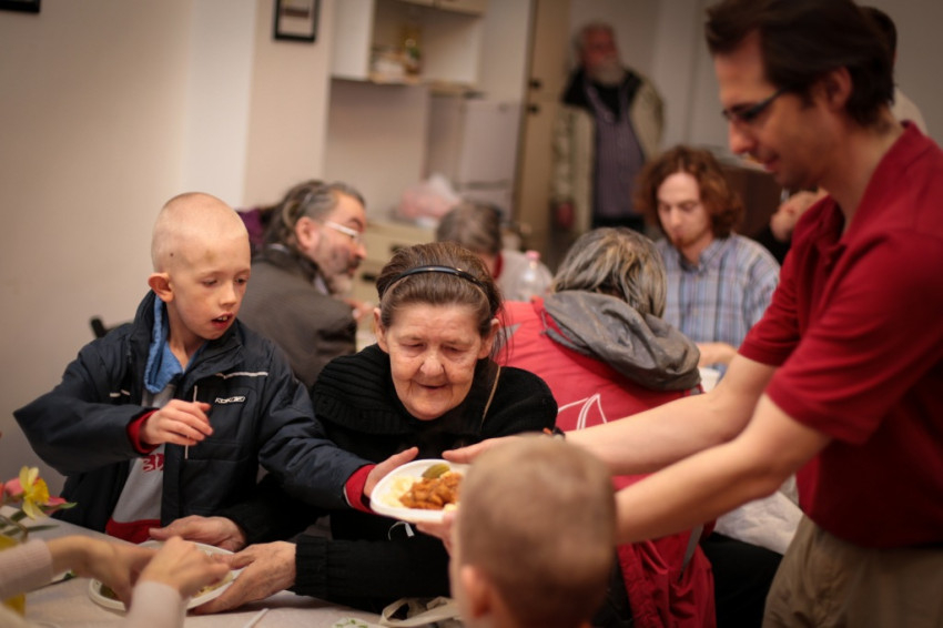 A szentmisét követően a közösség tagjai családias hangulatban látták vendégül a rászorulókat, hajléktalan barátaikat és a környéken lakó szegény családokat, az új kezdeményezésként fél éve működő Béke iskolájának (foglalkozás a környékbeli, főként nehéz sorsú kisgyermekekkel) látogatóit.