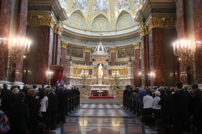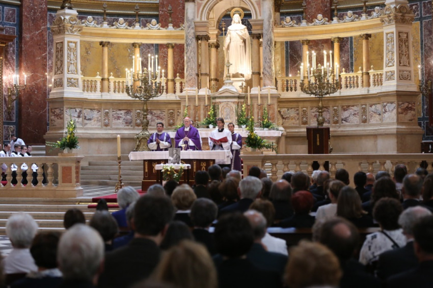 Hogyan lehetséges, hogy az Isten és ember közti szeretet ereje átviszi az embert a halálon? – tette fel a kérdést szentbeszédében Erdő Péter. „ Erős a szeretet, mint a halál” – olvashatjuk az Énekek Énekében a Biblia tanítását az ember örök sorsáról, a halálról és a feltámadásról. Isten szövetséget kötött népével, és szövetséget köt minden emberrel. Ha megtartjuk e szövetséget, ha engedelmes szívvel keressük Isten akaratát, akkor halálunkban is hasonlóak leszünk Krisztushoz, aki engedelmes volt mindhalálig. Akkor a mi életünk is búzaszem lesz, amely látszólag elhal a földben, de örök értékű gyümölcsöt terem – mondta a főpásztor.