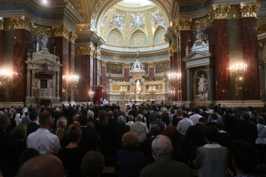 „Szomorúan, emelkedetten, de hittel és reménységgel ajánljuk fel ezt a szentmisét Tamás testvérünk lelki üdvösségéért. Ha valaki, úgy ő őszintén és radikálisan tette fel a kérdést Istenről, emberről és világmindenségről egyaránt” – fogalmazott homíliája kezdetén Erdő Péter bíboros.