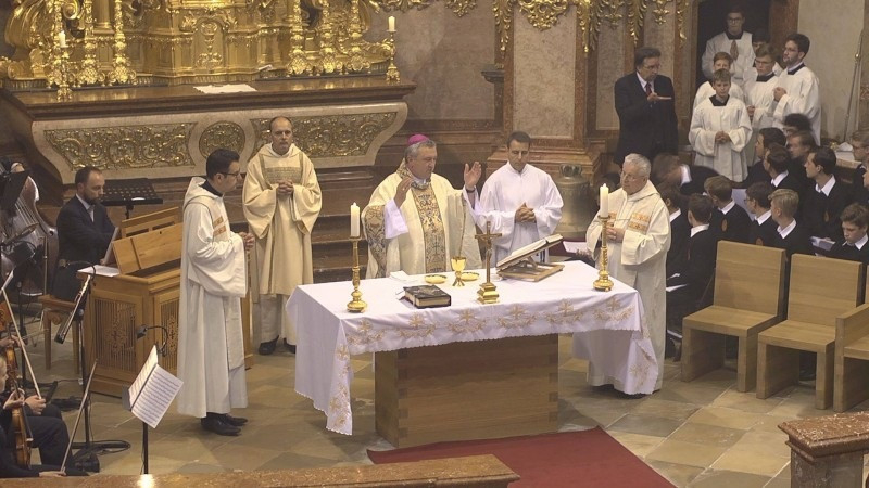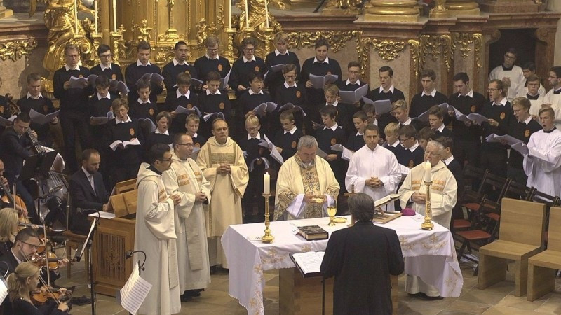 A szeptember 8-án bemutatott ünnepi liturgián a jubiláló kórussal együtt végzett zenei szolgálatot testvérkórusa, az Augsburger Domsingknaben; közreműködött Soós Gábor orgonista, valamint a Győri Filharmonikus Zenekar művészei. A zenei szolgálatot Reinhard Kammler, az augsburgi fiúkórus karmestere és Kelemen Áron bencés vezette.