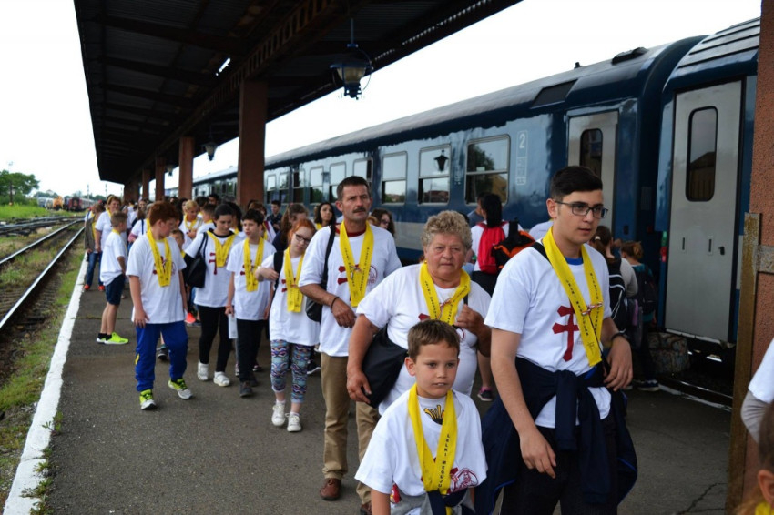 Többtucatnyian várták a vonatot a nagyváradi pályaudvaron. Néhányan a Nagyboldogasszony-székesegyházban bemutatott szentmise után csatlakoztak is a zarándoklathoz.
