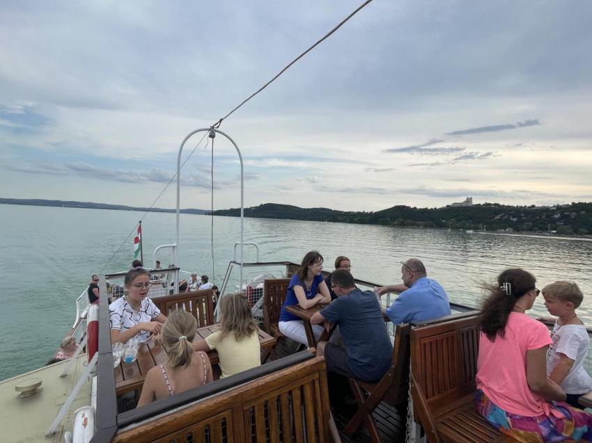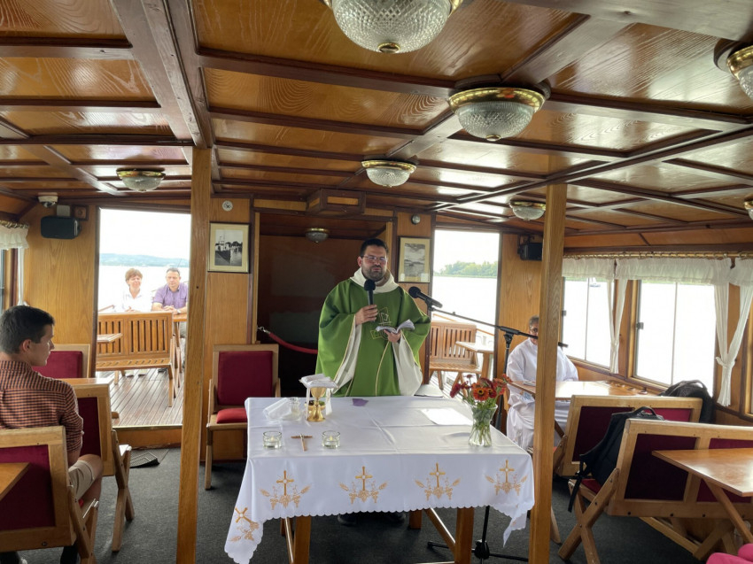 A szentmise után lehetőség nyílt beszélgetésekre is a gyönyörű Balatonon hajózva.