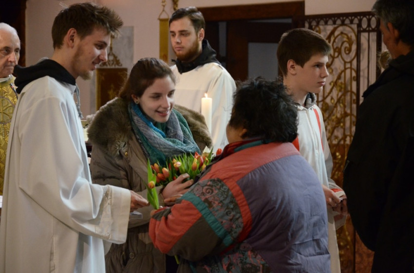 A szentmise végén mindenki kapott egy szál virágot és egy szentképet. A kép a liturgia szépségére és az Atya könyörületességére, a virág a barátság jó illatára emlékeztet, ahogy ez elhangzott a szentbeszédben is.