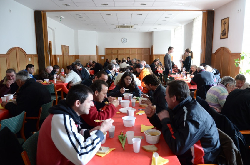 A szegények örömmel emlegették a karácsonyi ebédet, amelyen Udvardy György püspök és a pécsi szeminaristák is részt vettek.