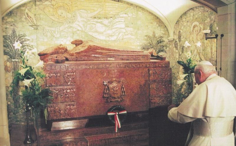 II. János Pál pápa, aki tizenöt éve, 2005-ben szintén április 2-án hunyt el, 1996-ban imádkozott Apor Vilmos püspök sírja előtt.