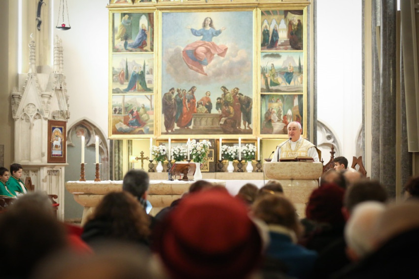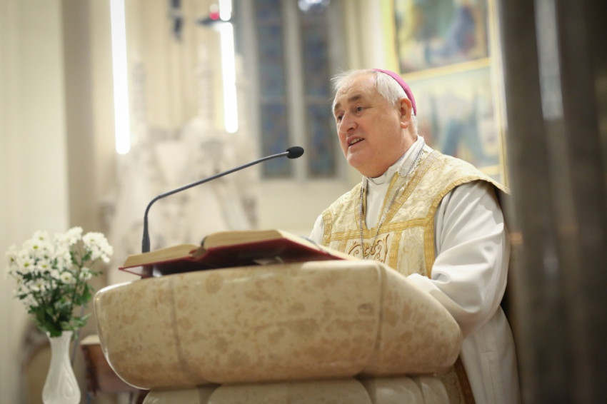 Az evangéliumból az ellenségszeretet parancsát emelte ki a szónok: „Szeressétek ellenségeiteket, tegyetek jót azokkal, akik gyűlölnek benneteket” (Mt 5,44). Majd feltette a kérdéseket: Mit kezdünk a feszültségekkel? Imádkozunk a megoldásért, vagy viszálykodunk? És arra buzdított, legyünk otthonainkban Isten irgalmas arcának megjelenítői.