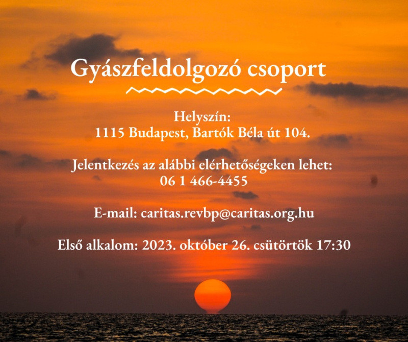 Emellett tízalkalmas gyászfeldolgozó csoport is indul a szolgálatnál. Várják mindazok jelentkezését, akik a közelmúltban veszteséget éltek át, és megosztanák fájdalmukat a sorstársakkal. A csoportban figyelmet, meghallgatást és támogatást kapnak a gyászuk feldolgozásában.
