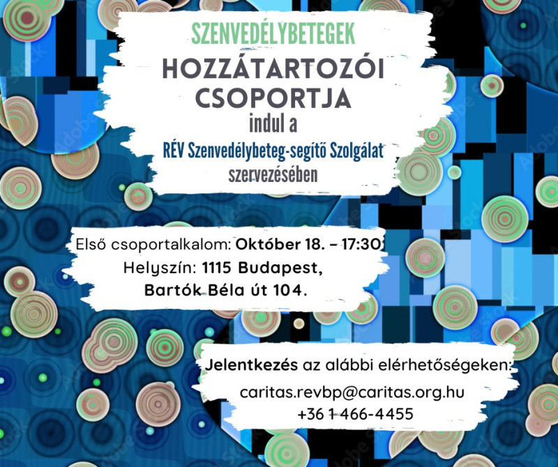Helyszín: Katolikus Karitász RÉV Szenvedélybeteg-segítő Szolgálat (1115 Budapest, Bartók Béla út 104.).