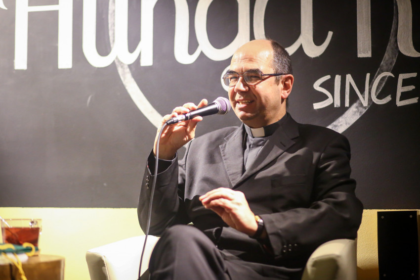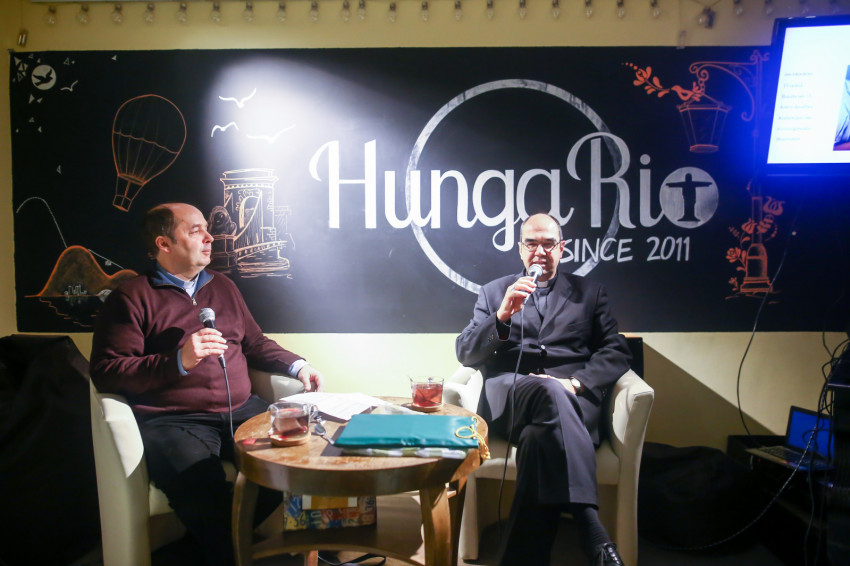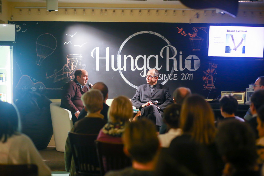 A HungaRio kávézóban megrendezett beszélgetés végén ki-ki még odamehetett a főpásztorhoz, beszélgethetett vele, kérdéseket tehetett fel neki. Közvetlen, valóban elérhető püspök volt most is.