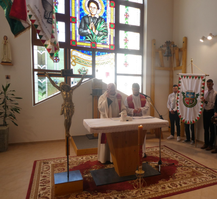 A harangláb és a harang megáldását Karch Krisztián káplán végezte, aki Kárpátalján, Ungváron született és jelenleg Nagykaposon működik – ott, ahol hajdan Mécs László papköltő írta nagyszerű verseit és plébánosként szolgálta Isten népét.