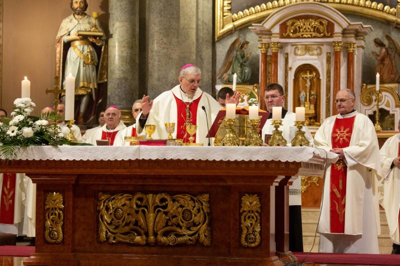Santo Rocco Gangemi, Szerbia új apostoli nunciusa örömét és megilletődését fejezte ki, amiért itt lehet a szabadkai székesegyházban ezen a jeles ünnepen, és – mint fogalmazott – „ha szerényen is, de éreztessem veletek Ferenc pápa lelki közelségét, aki küldöttei révén szeretné éreztetni jelenlétét minden egyes keresztény közösséggel, kifejezve Isten szent népe iránti törődését, és így betöltve a feltámadt Krisztustól Péterre bízott feladatot: »Legeltesd bárányaimat!«”