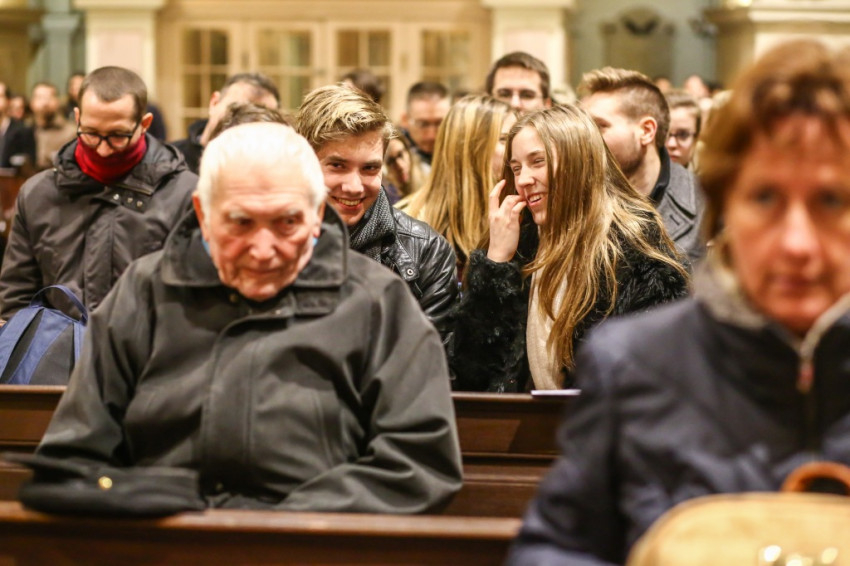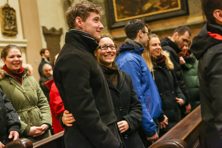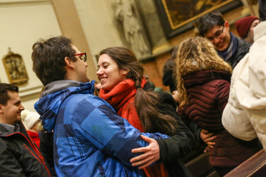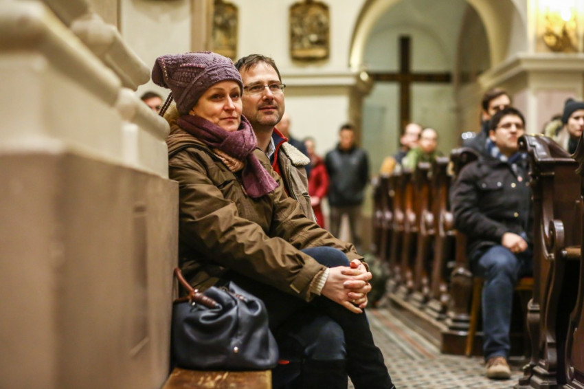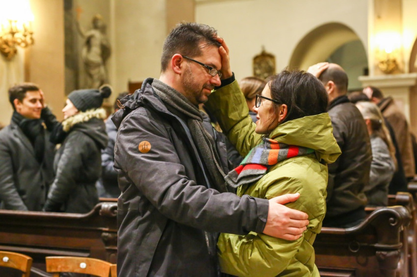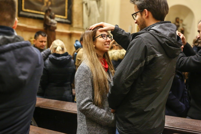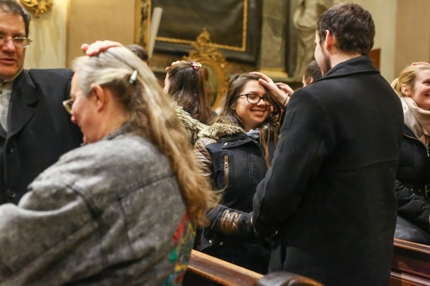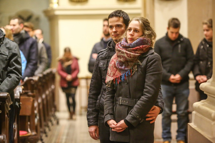 A szentségimádás csendjébe csöppentek mindazok, akik korábban érkeztek az esti hetes szentmisére. Idén is megtelt párokkal a templom. Megerősítő a jelenlétük, az összetartozásuk gesztusai, az örömet sugárzó arcuk. Sokan vannak, akiknek már múltjuk is van, még többen, akik előtt ott a jövő. A cél, amiért idejöttek, közös: hálát adnak Valakinek valakiért. Istennek, akinek segítségével építik jövőjüket és párjukért, akivel élik a jelent és tervezik a jövőt. A szerelmesek miséje pedig alkalmat ad erre, és így ünnepli, megerősíti az egymás és Isten iránt elkötelezett kapcsolatot.