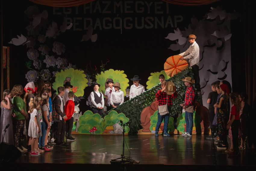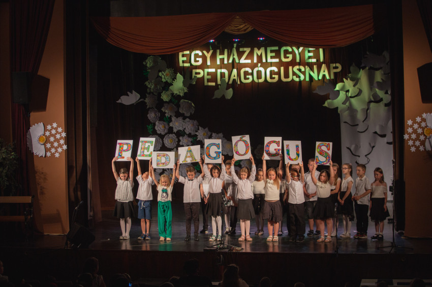 „Nagy lelkesedéssel állunk most itt, hogy műsorunkkal önfeledt perceket tölthessünk együtt és közösen ünnepelhessük meg a pedagógusnapot. Nagyon szeretnénk átadni vendégeinknek azt a hangulatot, melyet óvodánk és iskolánk él meg a mindennapokban. Reméljük, hogy a hétköznapokban is ránk jellemző vidámságot, szeretetet a most következő produkciók érzékeltetni tudják majd – fogalmazott a főigazgató.