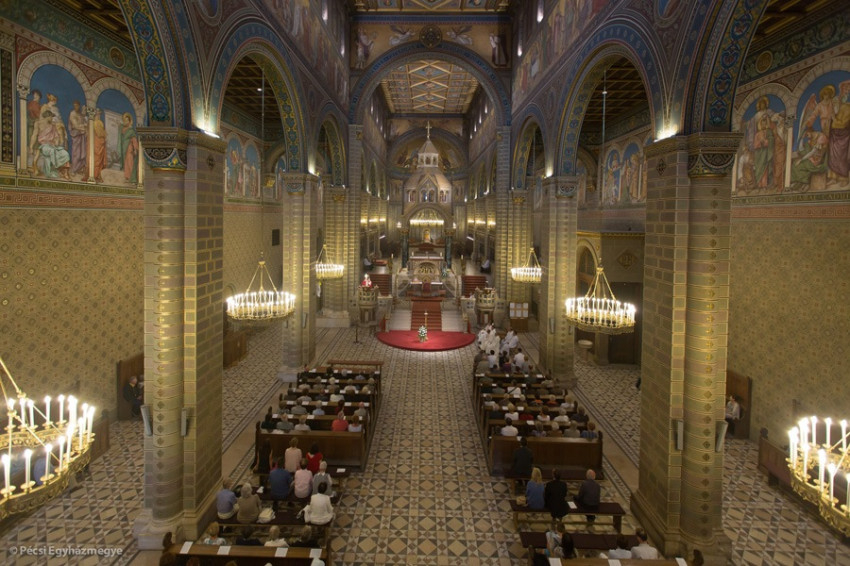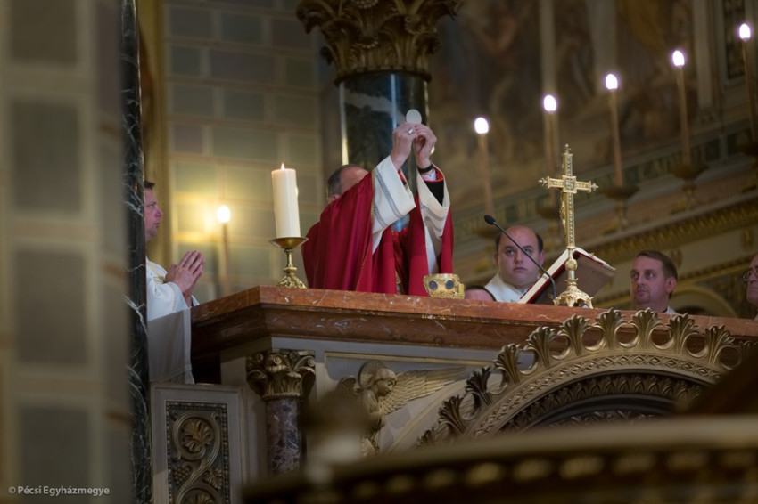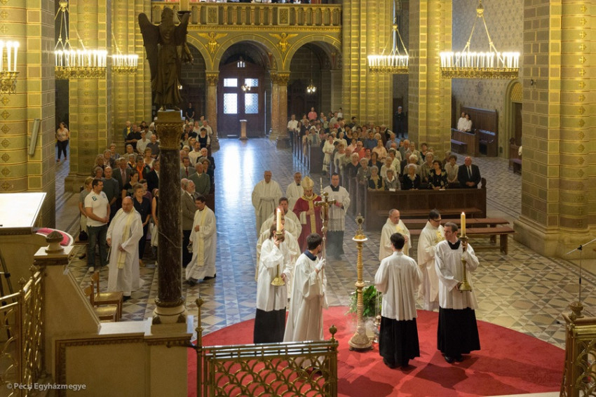 „Megköszönjük az Úristennek, hogy ehhez a Szentegyházhoz tartozunk. Megköszönjük, hogy a székesegyház az egyházat jelenti számunkra. Ez az egység, a központ, az otthon, a teljesség, a biztonság, maga az élet. A központ számunkra Krisztus. Otthon érezzük magunkat a székesegyházban, mert a miénk. Mert beleoltódtunk a szentségek révén. Semmi sem hiányzik az életünkből. Minden, ami élet, teljesség, jövő, ami után vágyakozik a szívünk, Isten szentegyházában a valóság. Isten lakik nálunk, és mi az Istennél lakunk. Ez egy szeretetkapcsolat” – ezekkel a gondolatokkal kezdte homíliáját Udvardy György megyéspüspök a Pécsi Egyházmegye védőszentjeinek ünnepén.