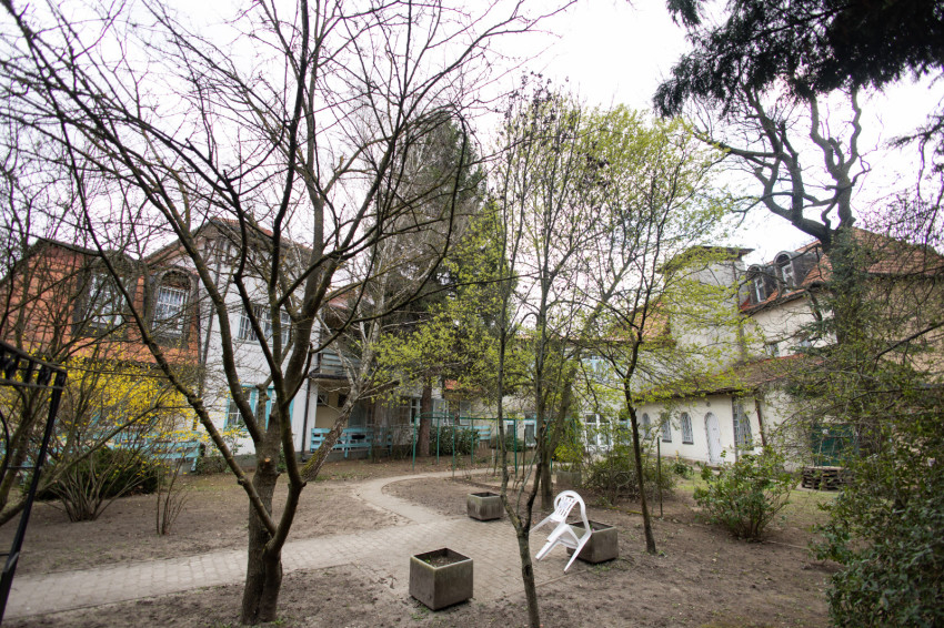 Toókosné Fehér Dorottyával a zegzugos kertben sétálunk, ő a négyfős mentálhigiénés csapat vezetője. Színes palettát kínálnak: van művészetterápia – ahol a lényeg a belső érzelmek kifejezése –, gyászfeldolgozó csoport és irodalmi teaház is. Ez utóbbit különösen szeretik az idősek, gyakran hoznak saját alkotásokat, kedvenceket egy-egy ünnepkör vagy évforduló kapcsán. A foglalkozásokat délelőtt tartják, amikor még mindenki frissebb. A lehetőségekhez mérten a demenciával élőket is igyekeznek bevonni ezekbe a tevékenységekbe. Önszerveződő körök is vannak, például a dalárda vagy a kártyaklub.