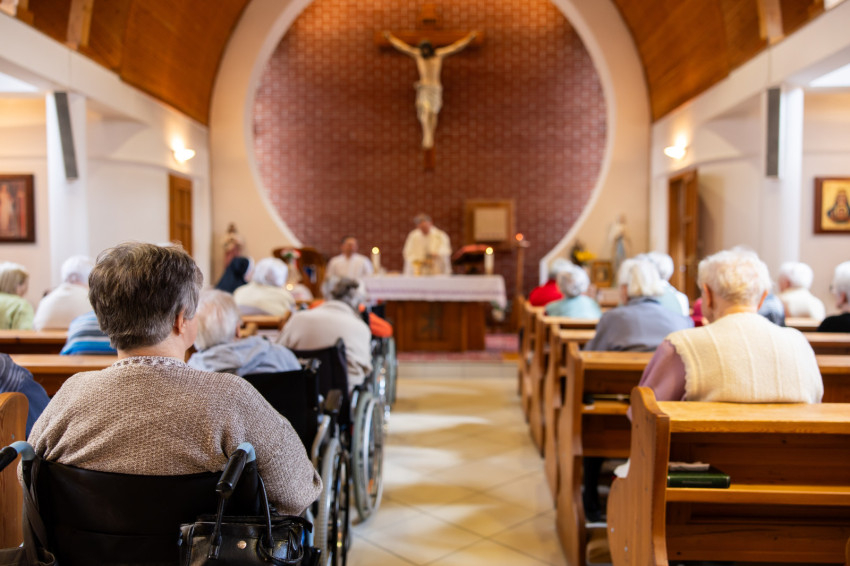 Bár saját papjuk a paphiány miatt nincs, az ismerős atyák felváltva járnak hozzájuk misézni, és Szilágyi Szabolcs plébános is elérhető számukra. Erika nővérnek van áldoztatási engedélye, így reggelente étkezés előtt körbejárja azokat, akik szeretnék magukhoz venni a szentséget. Sokan éppen a kápolna és az Oltáriszentség jelenléte miatt választották ezt az otthont. A szobákban elérhetők a katolikus médiaadók, újságok. „A lelki életnek szigorú a rendje. A dolgozóknak napi negyedórás szentségimádásra van lehetőségük, vasárnap litániát mondunk, és minden hónap tizenharmadikán fatimai ájtatosságot tartunk” – magyarázza Erika nővér.