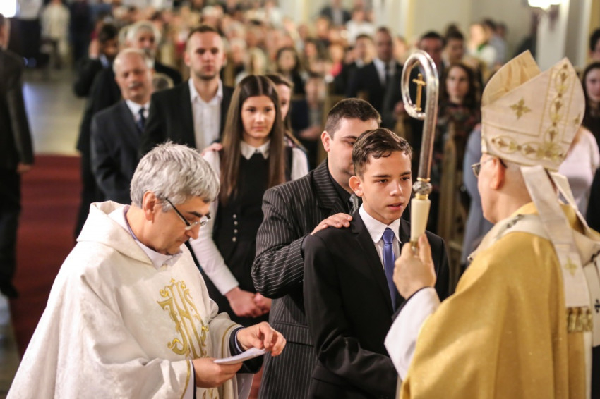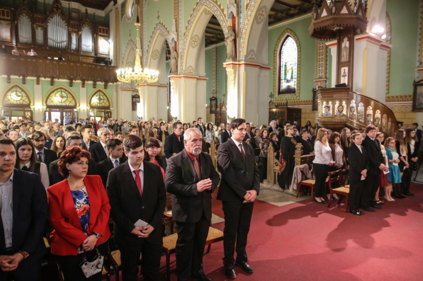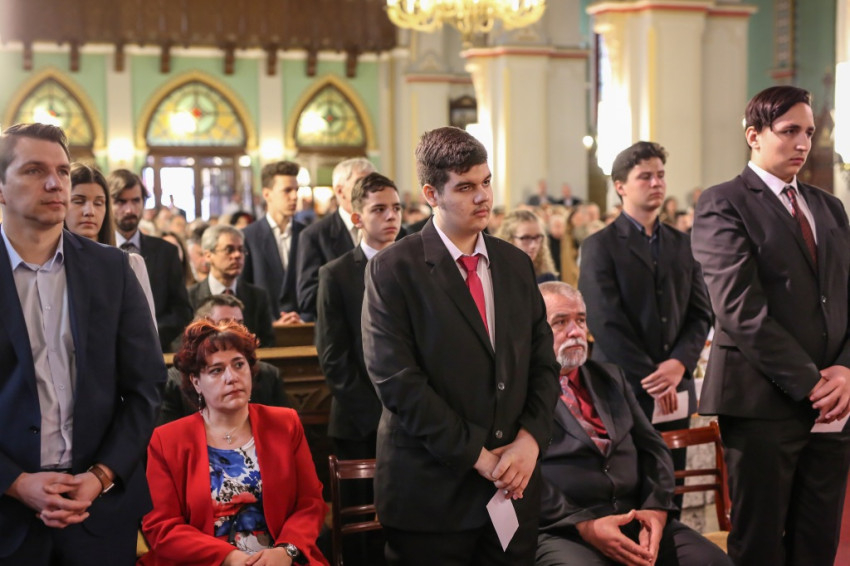 „Veletek ünnepelünk ebben a szertartásban, hogy különleges küldetésetekhez különleges megerősítést kapjatok a Szentlélek ajándékai által. Elindultatok egy úton, azzal a bizakodással vagyunk itt, hogy megerősítve együtt fogunk ebben a küldetésben veletek munkálkodni” – köszöntötte Forstner Bertalan, a képviselő-testület világi elnöke a szentség felvételére jelentkezőket.