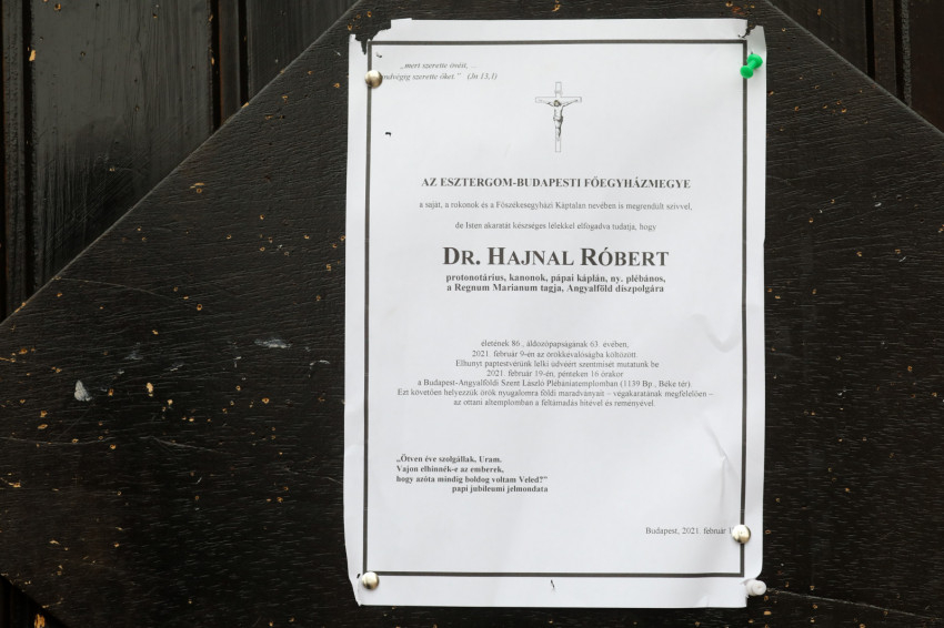 A gyászmise homíliáját Horváth Zoltán protonotárius kanonok, a budapest-terézvárosi Avilai Nagy Szent Teréz-plébániatemplom plébánosa mondta. Hajnal Róbert nyugalmazott plébánosként heti rendszerességgel vállalt kisegítő szolgálatot a terézvárosi templomban.