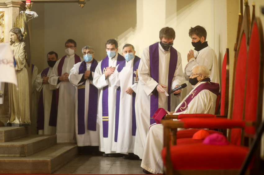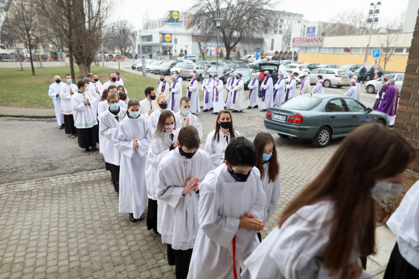 A templomi kórus Kodály Zoltán Stabat Materével búcsúzott Hajnal Róbert atyától.