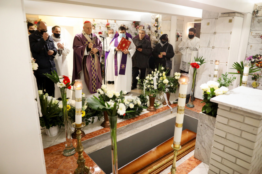 A gyászmise után az elhunyt földi maradványait – végakaratának megfelelően – a budapest-angyalföldi Szent László-plébánia altemplomában helyezték örök nyugalomra, szűk családi körben. A templomban összegyűlt hívők az angyalföldi espereskerületi összefogás eredményeként létrejött Angelus Communication videóközvetítése segítségével kapcsolódhattak be a temetési szertartásba.