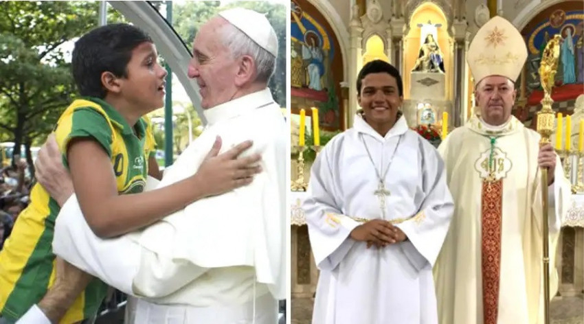 A püspök a Facebook-bejegyzésében megosztott néhány fotót; az egyik azt örökíti meg, amikor Ferenc pápa megöleli a kilencéves Nathan de Britót, a másik képen pedig Nathan már fiatalemberként látható: ferences szerzetesjelöltként áll Joaquim Wladimir Lopes Dias mellett. Nathan a Mato Grosso állambeli Rondonópolisban lépett be a Kisebb Testvérek Rendjébe.