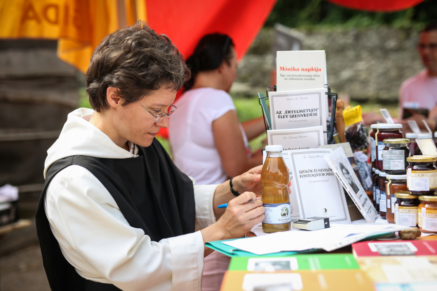Amikor a rendek, a megszólított kolostorok képviselőivel egyeztettünk, kértem, hogy a termékek árusítása mellett legyen szerzetesi jelenlét is a „piacon”. A standoknál minden nap álljon ott egy-egy barát vagy szerzetesnővér, akit megszólíthatnak az erre járó emberek, akik közül sokan talán először találkoznak rendben élő férfival vagy nővel, és először hallanak vagy olvasnak a szerzetesi lét és értékvilág gazdagságáról – mondja a polgármester. Fábry Szabolcs arról is beszélt, hogy az utóbbi években a Patrona Hungariae Iskolaközpontba járó lánya révén nyert átfogóbb betekintést a szerzetesek munkájába, szolgálatába. De van régebbről eredő motivációja is: a pálosokkal immár tíz év működik együtt az önkormányzat (Nagyvázsonyban pálos kolostorrom is található – a szerk.): többek közt lovaskocsis zarándoklatokat vezetnek együtt a magyar alapítású szerzetesrend társszervezésében.