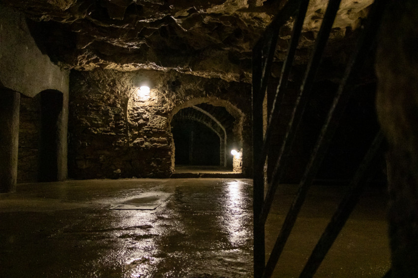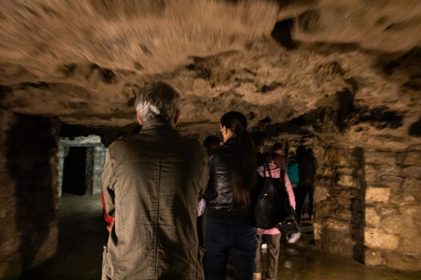 A túra második felében a Sziklakórház területéről egy üvegajtón keresztül léphetünk át a Duna-Ipoly Nemzeti Park Igazgatóságához tartozó Várnegyed alatti barlangrendszerbe. A több kilométeres útvonal egy részén barangolva csodálhatjuk meg a feltörő melegvíz által természetes módon kialakított járatokat és a középkorban az emberek által kivájt pinceszerű helységeket. Az átalakítások előtt különálló kis pincék sora a világháború alatt lett komplett rendszerré átalakítva. A barlangrészek ezekben a nehéz időkben megannyi embernek, civileknek és sebesült katonáknak jelentettek óvóhelyet. A II. világháborús források alapján lehettek időszakok, amikor akár 10 ezer ember tartózkodott egyszerre a föld alatti rendszerben. Hihetetlen belegondolni, hogy a 10–15 °C-os, a kőrétegen átcsordogáló víztől nedves barlangrendszerben ennyi ember zsúfolódjon össze. A kiépített és természetes folyosók váltakozásával utunk közeledik a felszínhez, egy pincébe érkezünk és indulunk el a lépcsősoron felfelé.