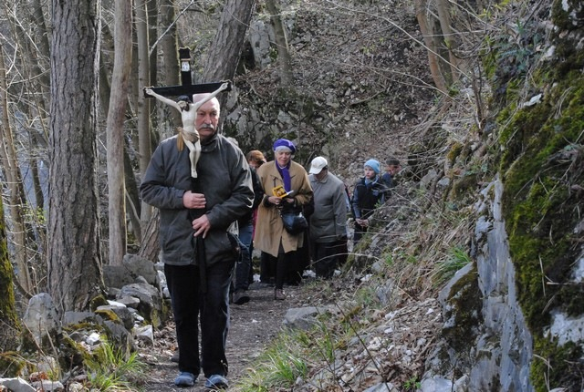 Az idén a szeszélyes időjárás miatt meglehetősen kevesen vállalták az erdei keresztutat. A jelenlévők a sziklába vájt stációk előtt elmélkedve, imádkozva emlékeztek meg a szenvedéstörténetről. A sok helyen nagy szikladarabokkal nehezített kálvária az út végén lévő kis kápolnánál ért véget.