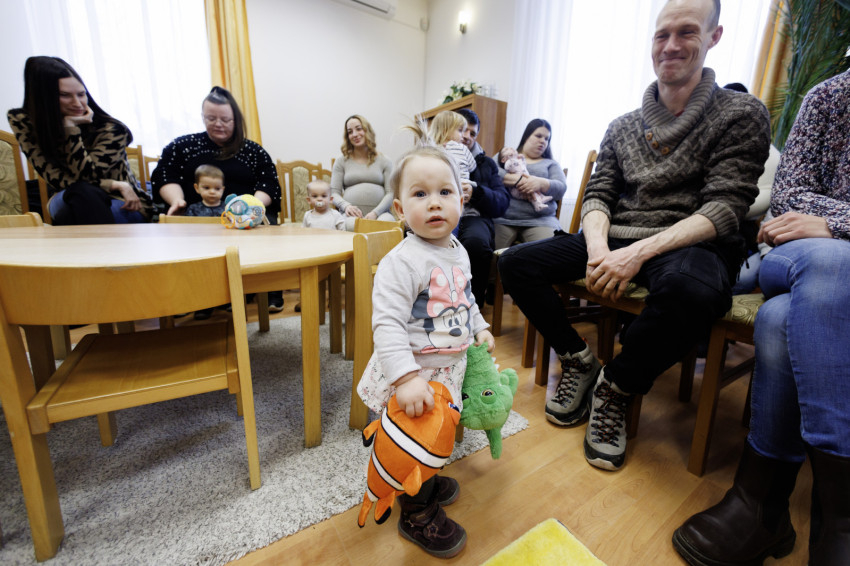 A monorierdei önkéntesek segítségével a családoknak névre szólóan kiosztották a pelenkákat. Egymás után vitték ki a szülők a piciket, akik közül néhány még vissza is integetett.
