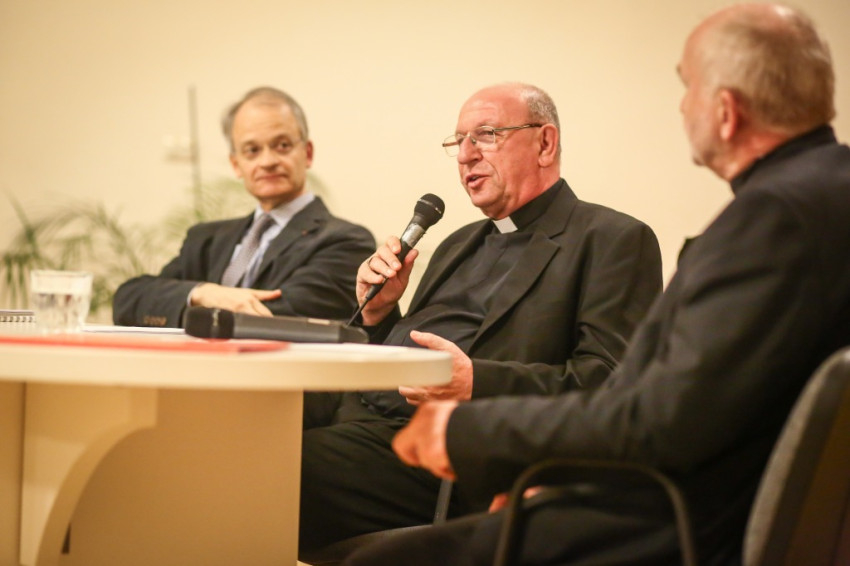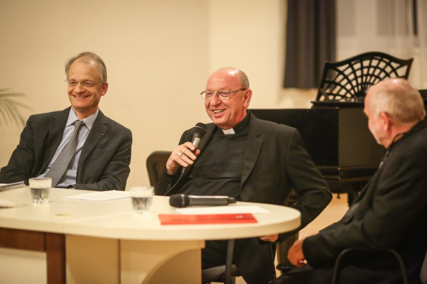 A Párbeszéd Háza vezetője, Sajgó Szabolcs SJ bevezető kérdésére a püspöki szinódus intézményéről beszélt Palánki Ferenc debrecen-nyíregyházi megyéspüspök, a Magyar Katolikus Püspöki Konferencia Ifjúsági Bizottságának elnöke, aki az MKPK hivatalos küldötteként vett részt Rómában a fiatalokkal foglalkozó üléssorozaton.