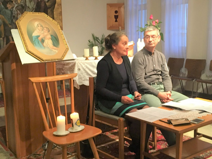 A szentmise után Szalánczi Mariann és Gábor beszélt a házasságról. Már kiderült számunkra az eddigi előadásokból és beszélgetésekből, hogy minden házasságban vannak örömök és nehézségek, amiket nagyon hasonlóan élünk meg. Boldogok akarunk lenni, szeretni akarjuk a másikat. A szeretet szívből jövő állapot, de van benne akarat is. Nehéz helyzetekben a szív és az akarat is kell. Van krízis minden házasságban, ha sikerül átvészelni, erősebb lesz tőle.