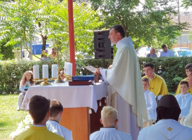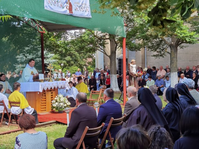 A búcsús beszédet mondó szerzetes kifejtette: „Kedves testvérek, találó ez a mondat – aki a szeretettel találkozik, az megváltozik. Megváltozik külsőleg és belsőleg, megváltozik a viszonyulása a szeretteihez, a teremtett világhoz, és benne a dolgokhoz. Páduai Szent Antal, egyházközségünk védőszentje nem akart mást: találkozni akart a szeretettel, és találkoztatni akart másokat a szeretettel. Minél több embert odavinni a szeretet forrásához. És ez – a szeretet forrása – nem más, mint Jézus szíve. Az a szív, akinek a szatmári egyházmegyét felajánlották.”