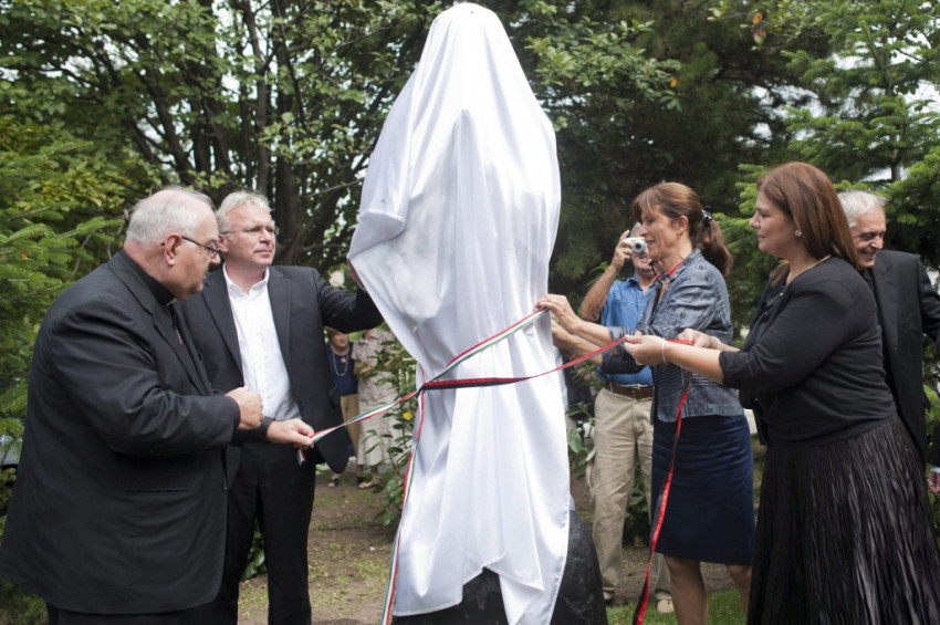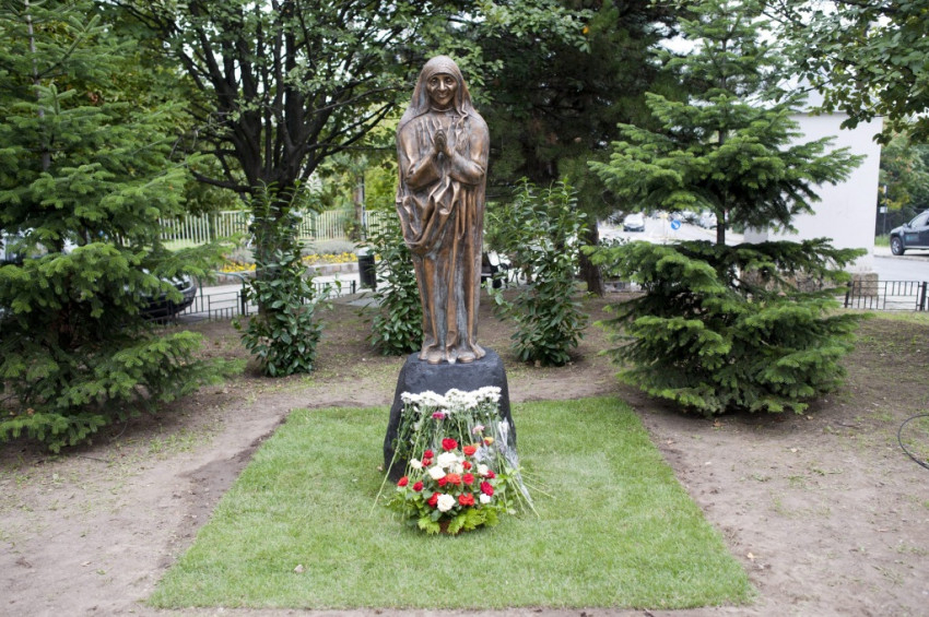 Teréz anya bronzszobrát, Mihály Gábor szobrászművész alkotását Pokorni Zoltán polgármester, Lévai Anikó, Mira Hoxha és Alberto Bottari de Castello apostoli nuncius leplezte le.