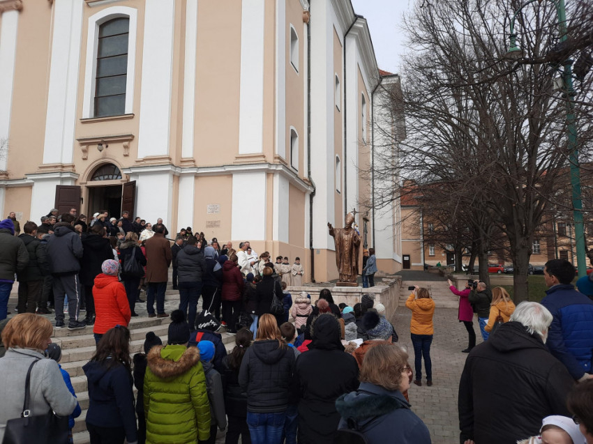 Az iskolaközpont ünnepe az Urunk Mennybemenetele templomban bemutatott szentmisével kezdődött, melynek főcelebránsa Felföldi László megyéspüspök volt. Koncelebrált Petkó Tamás plébános, Molnár Erik káplán és Priskin Zsolt diakónus.