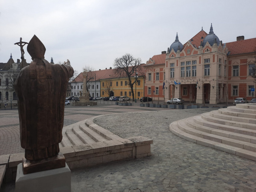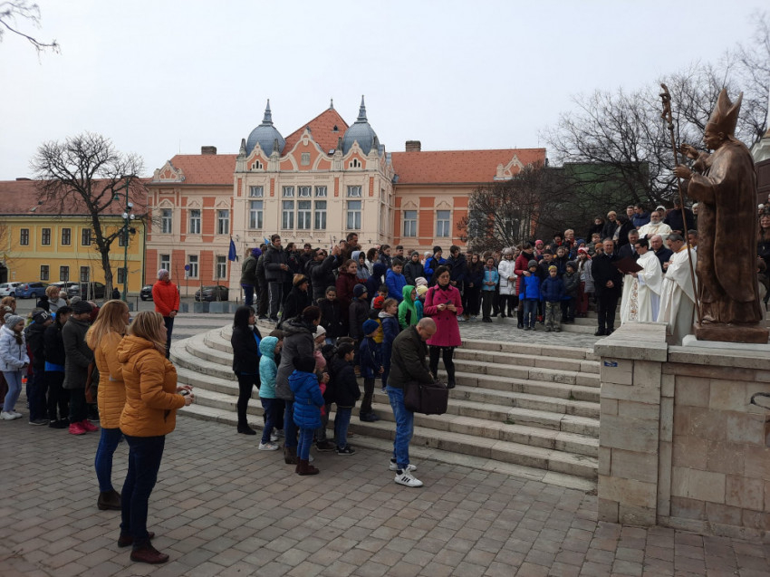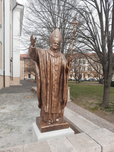 Pápává választása után II. János Pál hívekhez intézett első mondata így hangzott: „Ne féljetek!” A félelem leküzdésében nagy ereje van az imádságnak, a mély istenkapcsolatnak, mely a pápát is elkísérte kicsiny gyermekkorától egészen a haláláig. „Ne féljetek! Merjetek álmodni! Merjetek elindulni! Ne féltsétek az életeteket Istentől! A szent pápa egykori gondolatának ma is ez az élő üzenete. Erre gondoljatok, amikor a téren átkelve rápillantotok a szoborra” – fordult a diákokhoz a megyéspüspök.