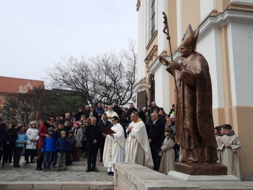 A liturgiát követően a főpásztor megáldotta Szent II. János Pál pápának az Urunk Mennybemenetele templom előtti téren felállított, egész alakos szobrát, mely Rózsa László, a Váci Egyházmegye tolnai születésű állandó diakónusa nagylelkű felajánlásának köszönhető. A szobor talapzatára hamarosan tábla kerül, melyre a „Ne féljetek!” feliratot vésik majd fel.