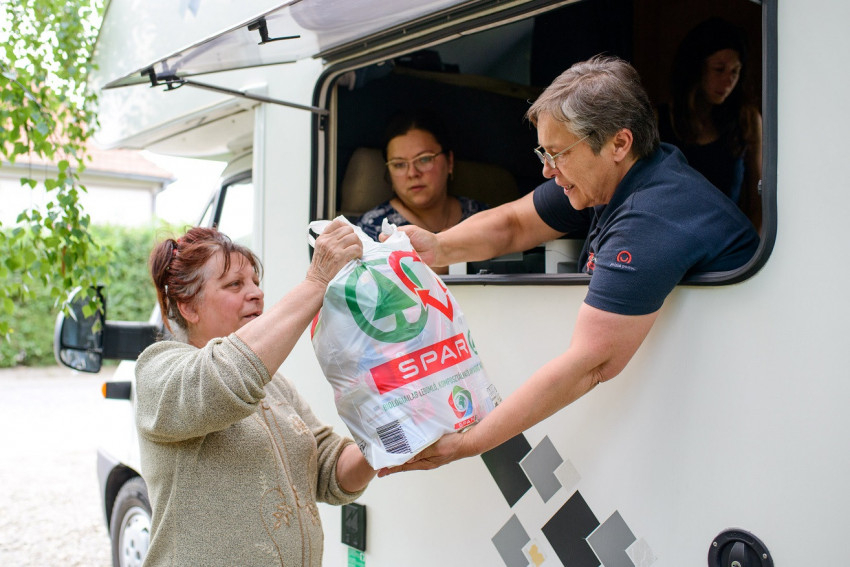 Az első adományosztásokon a Magyar Máltai Szeretetszolgálat élelmiszer-egységcsomagokból álló segélyszállítmányát adták át a rászoruló családoknak.